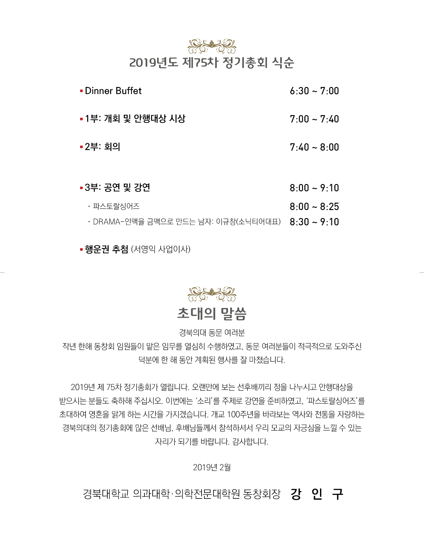 2019³â °æºÏÀÇ´ë-ÀÇÀü¿ø µ¿Ã¢È¸ Á¤±âÃÑȸ¿¡ ÃÊ´ëÇÕ´Ï´Ù.
