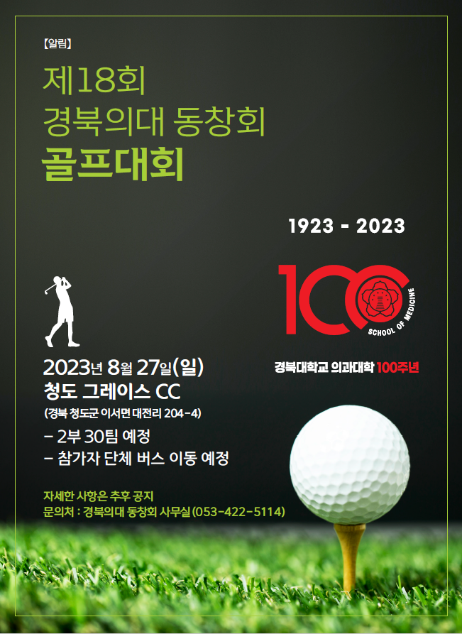 Á¦18ȸ °æºÏÀÇ´ë µ¿Ã¢È¸ °ñÇÁ´ëȸ°¡ ¾Æ·¡¿Í °°ÀÌ ¿¹Á¤µÇ¾îÀÖ½À´Ï´Ù.