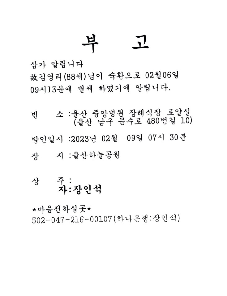 54ȸ ÀåÀμ® µ¿¹® (¿ï»ê Àå¾È°úÀÇ¿ø) ºÎ°íÀÔ´Ï´Ù.